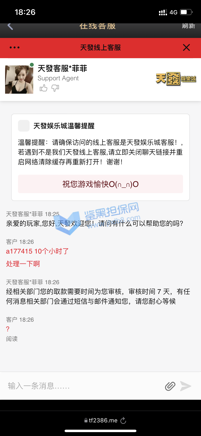 3.用户提交维权申请后资料不齐全,需在一周内补齐鉴黑担保网客服要求的资料,若超过一周时间没有完善维权信息,维权将因资料不全拒绝受理;