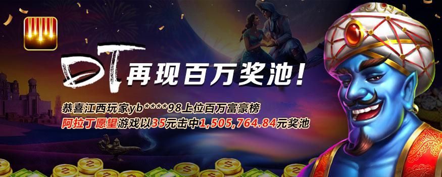 恭喜亚博会员yb**98在DT平台《阿拉丁愿望》游戏喜中 150万 奖池彩金!